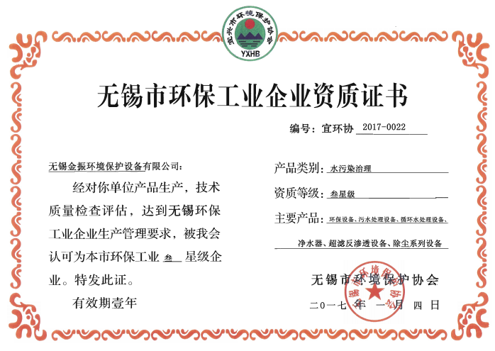 無錫市環(huán)保工業(yè)企業(yè)資質(zhì)證書