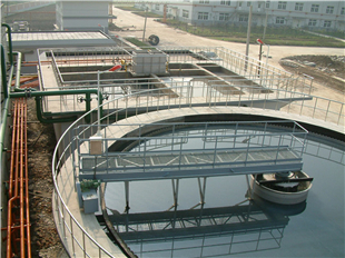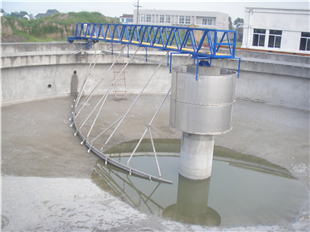 工作橋由安裝在周邊的驅動機構帶動,繞安裝在池中心支墩上的中心支座旋轉,安裝在工作橋的一組刮泥板在旋轉過程中,將沉降在池底的污泥刮向池中心的集泥坑。同時,液面上的浮渣在在浮渣刮板和周邊擋堰形成的漸縮區域內集中,由浮渣刮耙扒到集渣斗,排出池外。