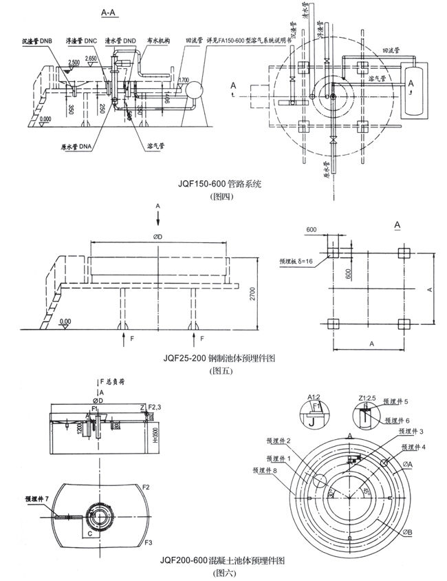 表6.JQF200-600混凝土池體預埋件參數表:(參見圖六)